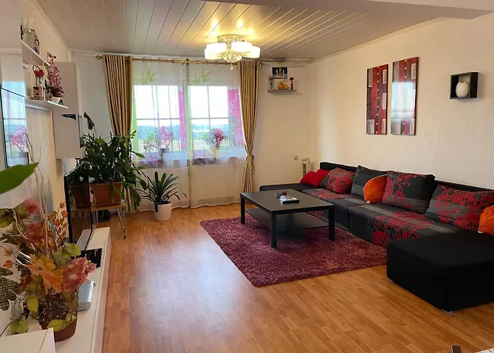 これはWingertsbergから運転すれば5分になります. 都市部はたった7km離れ,フランクフルト・ハ-ン空港は60km離れています. Haus Der Rosenアパ-トはSpitzlayからわずか徒歩です.
